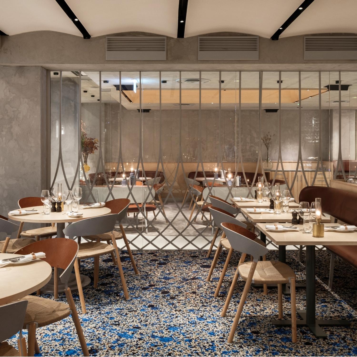 Kasthall was chosen as the carpet and rug supplier for the interior of the restaurant Hillenberg in Stockholm. The interior design draws inspiration from New York artist Emanuel Röhss who has made graffiti paintings on the restaurant's interior walls. Kasthall designer Maja Johansson embraced this during the design process to find suitable patterns and colors for the custom-made carpets.